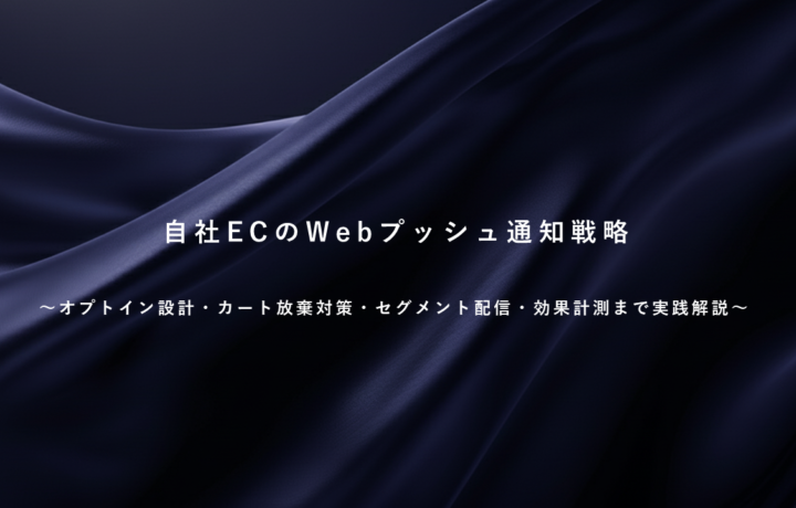 自社ECにおけるWebプッシュ通知戦略は、オプトイン設計・クリエイティブ・セグメント配信・配信タイミング・効果計測という一連の設計を体系化することで、メルマガやLINEとは異なるユーザー層へのリーチと即時性の高い接客を実現します。特にカート放棄リカバリー・セール告知・在庫入荷通知のような行動トリガー型配信は、費用対効果が高く自動化も容易なため、初期の実装優先度が高い施策です。